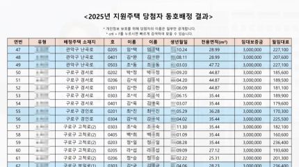 그런데 YTN이 발표 당시 명단을 살펴보니 '지원주택' 사업 당첨자들의 이름과 생년월일이 모두 공개됐습니다.