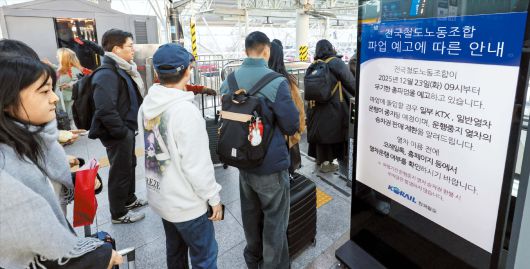 23일 오전 9시로 예고됐던 철도노조의 총파업이 유보됐다. 코레일의 1노조인 철도노조는 이날 자정 쯤 “파업을 유보하겠다”고 밝혔다. 애초 이들은 “조직의 명운을 걸겠다”며 1만2000명이 참여한 총파업을 예고했으나, 쟁점이었던 성과급 인상과 관련해 정부가 코레일 측 주장을 일부 수용하면서 파업 유보로 입장을 바꾼 것이다. 이에 따라 열차는 정상 운영된다.
