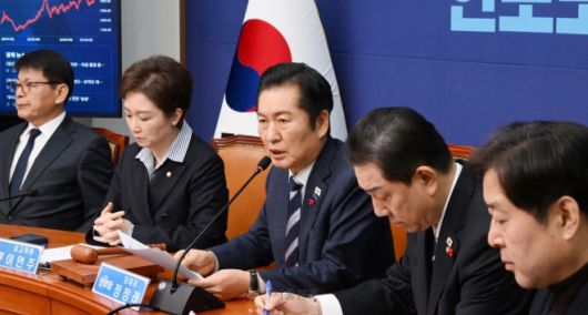 정청래(외쪽 세 번째) 더불어민주당 대표가 22일 국회에서 열린 최고위원회의에서 발언 하고 있다.2025.12.22안주영 전문기자 |