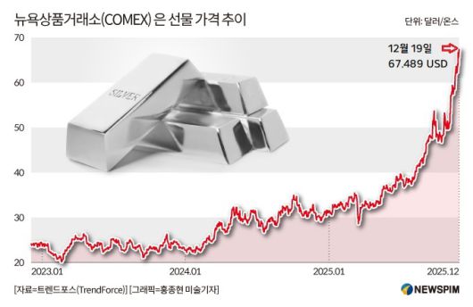 [서울=뉴스핌] 배상희 기자 = 국제 은 값이 연일 최고가를 경신하며 온스당 67달러 선도 넘어섰다. 전기차와 인공지능(AI) 시대 도래와 함께 급증한 은 수요가 가격 상승을 이끌면서, 2025년 원자재 시장의 가장 눈부신 스타로 떠올랐다.
