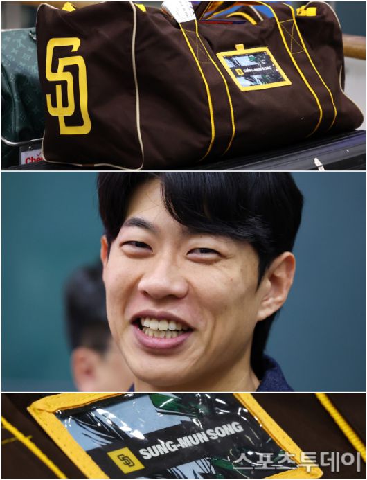 [인천공항=스포츠투데이 팽현준 기자] MLB 샌디에이고 파드리스와 4년 1,500만달러(약222억)에 계약한 송성문이 23일 인천국제공항으로 귀국하고 있다. 2025.12.23.