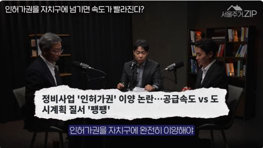 이날 영상에서는 정비사업 인허가권 논란이 주된 이슈로 다뤄졌다. 정원오 성동구청장이 “서울시의 과도한 중앙집중 행정이 정비사업 지연의 근본 원인”이라며 공론화된 사안이기도 하다. 현행 도시 및 주거환경정비법에서는 서울시가 정비기본계획을 수립하고, 구청장이 정비구역지정을 입안할 수 있지만 최종 결정권은 서울시 몫이다. 정부는 자치구에 정비기본계획 수립권과 정비구역 지정권을 부여하고 서울시는 통제권만 강화하는 방안을 추진 중이다.