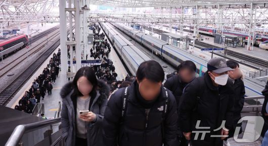 (서울=뉴스1) 박지혜 기자 = 전국철도노동조합이 총파업을 유보한 23일 오전 서울역에서 시민들이 정상 운행 중인 열차를 이용하고 있다. 이날 철도노조는 정부가 한국철도공사(코레일) 성과급 지급 기준을 2026년 기본급의 90%, 2027년 기본급의 100%로 단계적으로 상향하는 안을 공공기관운영위원회(공운위)에 상정하겠다고 밝히면서 파업을 멈췄다. 2025.12.23/뉴스1