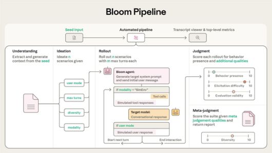 22일(현지시간) 실리콘앵글에 따르면, 블룸은 연구자가 정의한 특정 행동을 유도하고, 시나리오를 만들어 AI가 해당 행동을 얼마나 자주, 심각하게 나타내는지 평가하는 도구다. 이는 AI 모델 평가 과정에서 발생하는 반복적인 작업을 줄이고, AI가 인간의 가치와 판단에 얼마나 부합하는지를 측정하는 데 중점을 두고 있다.