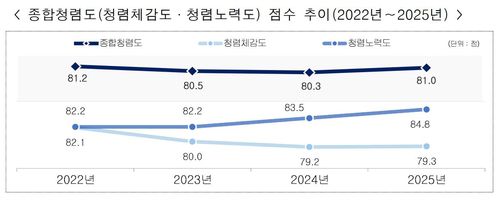 청렴노력도는 84.8점으로 전년 대비 1.3점 상승했다. 각급 기관에서 반부패 시책을 체계적으로 운영한 것으로 평가됐다.