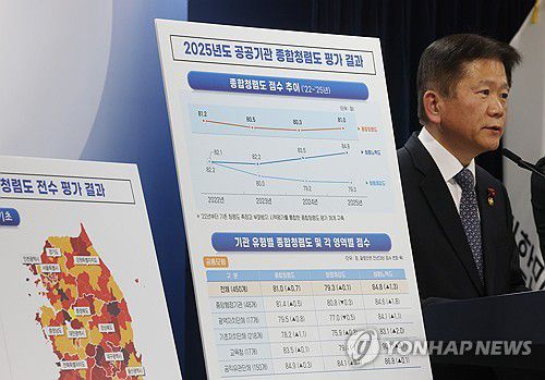 (서울=연합뉴스) 신준희 기자 = 23일 정부서울청사에서 이명순 국민권익위원회 부패방지부위원장이 2025년 공공기관 종합청렴도 평가 결과를 발표하고 있다. 2025.12.23