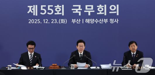 (부산=뉴스1) 이재명 기자 = 이재명 대통령이 23일 부산 동구 해양수산부 청사에서 열린 국무회의에서 발언하고 있다. (대통령실통신사진기자단) 2025.12.23/뉴스1