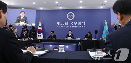 (부산=뉴스1) 이재명 기자 = 이재명 대통령이 23일 부산 동구 해양수산부 청사에서 열린 국무회의에서 발언하고 있다. (대통령실통신사진기자단) 2025.12.23/뉴스1