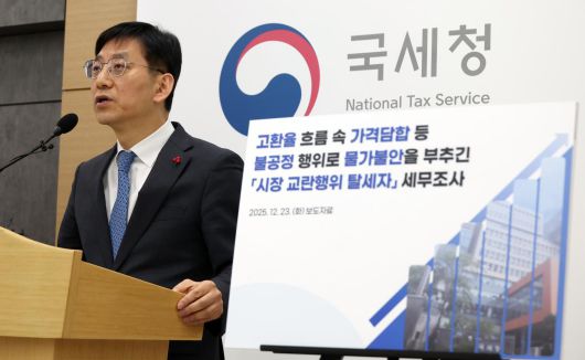 안덕수 국세청 조사국장이 23일 세종시 정부세종2청사에서 가격담합 등 불공정행위로 물가 불안을 부추긴 시장 교란행위 탈세자에 대한 세무조사를 실시한다고 밝히고 있다. 2025.12.23. 뉴시스 |