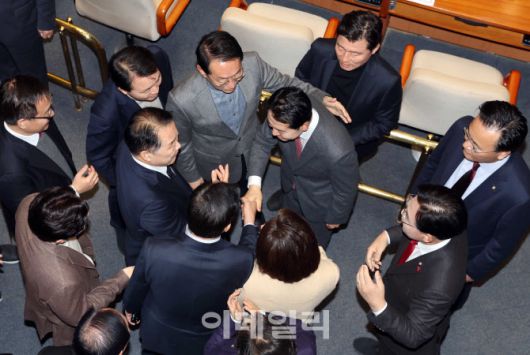 [이데일리 노진환 기자] 장동혁 국민의힘 대표가 23일 서울 여의도 국회에서 열린 제430회국회(임시회) 제2차 본회의에서 '12·3 윤석열 비상계엄 등에 대한 전담재판부 설치 및 제보자 보호 등에 관한 특별법안(대안)에 대한 수정안'에 대한 무제한 토론을 마친 후 의원들과 인사하고 있다.