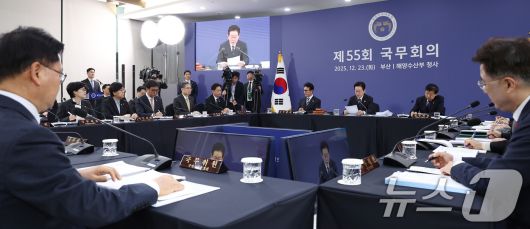 (부산=뉴스1) 이재명 기자 = 이재명 대통령이 23일 부산 동구 해양수산부 청사에서 열린 국무회의에서 발언을 하고 있다. (대통령실통신사진기자단) 2025.12.23/뉴스12expulsion@news1.krCopyright ⓒ 뉴스1. All rights reserved. 무단 전재 및 재배포, AI학습 이용 금지.