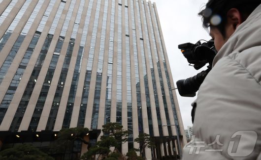 (서울=뉴스1) 장수영 기자 = '쿠팡 퇴직금 미지급 무혐의 외압' 의혹을 수사하는 관봉권·쿠팡 상설 특검팀이 23일 서울 송파구에 위치한 쿠팡풀필먼트서비스에 대한 압수수색에 착수한 가운데 취재진이 현장에 대기하고 있다. 2025.12.23/뉴스1presy@news1.krCopyright ⓒ 뉴스1. All rights reserved. 무단 전재 및 재배포, AI학습 이용 금지.