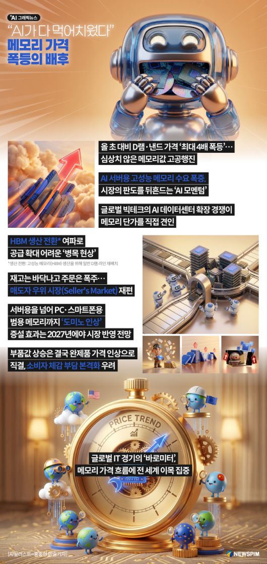 [AI그래픽뉴스] "AI가 다 먹어치웠다" 메모리 가격 폭등의 배후