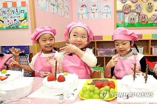 (광주=연합뉴스) 성탄절을 이틀 앞둔 23일 오전 광주 북구청 직장어린이집에서 아이들이 요리 활동 시간에 부모에게 줄 생크림 케이크를 만들고 있다. 2025.12.23 [광주 북구 제공. 재판매 및 DB 금지]