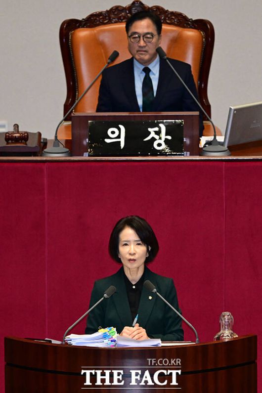 앞서 장동혁 국민의힘 대표의 '24시간 반대' 토론 직후 여권 주도로 내란재판부 설치법이 통과된 가운데 이어서 상정된 정보통신망법 개정안에도 최수진 국민의힘 의원이 무제한토론 주자로 나섰다.