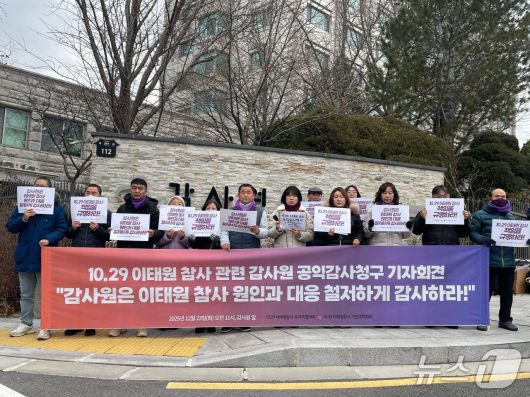 (서울=뉴스1) 유채연 기자 = 신임 감사원장의 취임이 예정된 가운데 10·29 이태원 참사 유가족과 시민사회가 감사원에 공익감사를 청구했다.