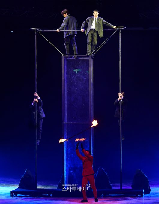 뮤지컬 ‘나 혼자만 레벨업 온 아이스’ 시연. <강영국 기자>