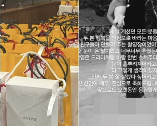 앞서 김우빈과 신민아의 결혼식은 비공개로 진행됐음에도 불구하고 하객들을 통해 다양한 비하인드가 전해지며 온라인을 훈훈하게 달궜다. 결혼식 메뉴판과 함께 공개된 답례품에는 신민아가 앰배서더로 활동 중인 글로벌 뷰티 브랜드 랑콤 제품과 럭셔리 향수 브랜드 아쿠아 디 파르마 아이템이 포함돼 있었고, “소중한 시간 함께해 주셔서 감사합니다”라는 메시지 카드까지 더해져 감동을 안겼다.