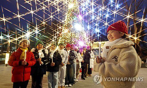 (서울=연합뉴스) 김인철 기자 = 성탄절을 앞두고 어린이 성가대원들이 아기 예수의 탄생을 축하하며 노래합니다. 온 세상에 촛불의 온기가 퍼져나가고, 평화가 가득하길 기원하며. 지난 18일 서울 노원구 서울광염교회 성탄트리 앞. 2025.12.23