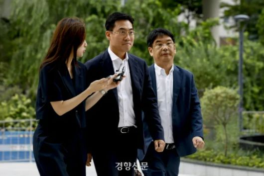 ‘김건희 집사 게이트’ 의혹에 연루된 의혹이 제기된 조영탁 IMS모빌리티 대표(가운데)가 지난 8월20일 서울 종로구 KT광화문빌딩에 마련된 김건희 특검 사무실로 출석하고 있다. 문재원 기자 |