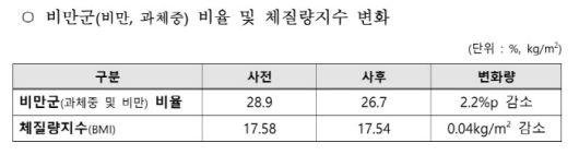 2025년 참여 아동들은 건강생활습관과 비만군율이 실질적으로 개선된 것으로 나타났다. 참여 아동(약 8800명) 중 사전·사후 신체계측과 설문조사가 완료된 약 5200명을 대상으로 분석한 결과다.