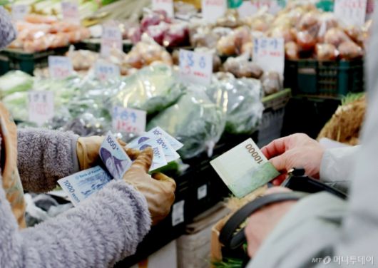 25일 서울 시내의 한 전통시장에서 시민들이 채소를 구매하고 있다./사진=뉴시스 |