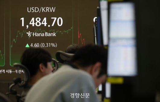 미국 달러 대비 원화 환율이 1483.6으로 주간거래를 마친 가운데 23일 서울 중구 하나은행 딜링룸에 원·달러 환율이 표시되어 있다. 2025.12.23 권도현 기자 |