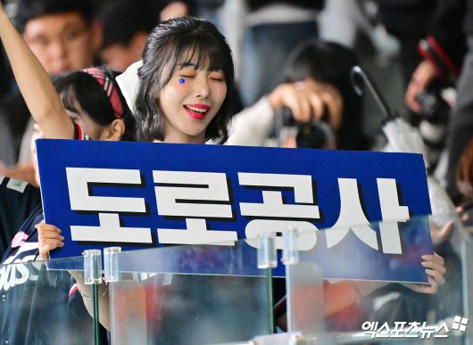 (엑스포츠뉴스 장충, 김한준 기자) 23일 오후 서울 장충체육관에서 열린 '진에어 2025-2026 V-리그' GS칼텍스와 한국도로공사의 경기, 천소윤 치어리더가 열띤 응원을 선보이고 있다.김한준 기자 kowel@xportsnews.com