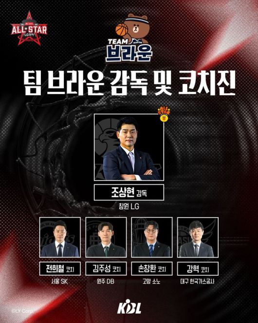이번 올스타전 팀명은 KBL과 협업 중인 IPX의 인기 캐릭터 '라인프렌즈(LINE FRIENDS)'와 함께 정해졌다. 창원 LG 조상현 감독은 팀 브라운(BROWN), 안양 정관장 유도훈 감독은 팀 코니(CONY)를 각각 맡아 선수단을 구성했다.