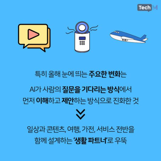 사람의 질문을 이해하고, 취향을 파악하며 일상과 콘텐츠, 여행, 가전, 서비스 전반을 함께 설계하는 '생활 파트너'로 자리 잡았으며 기업들은 AI 적용 범위를 확대하기 위해 속도를 내고 있다.