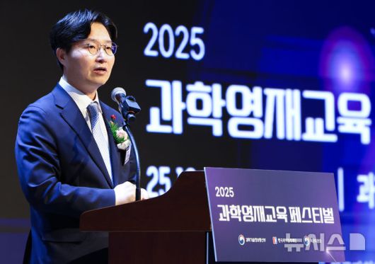 [서울=뉴시스] 황준선 기자 = 구혁채 과학기술정보통신부 차관이 23일 오전 서울 강남구 과학기술컨벤션센터에서 열린 2025 과학영재교육 페스티벌에서 축사를 하고 있다. 2025.12.23. hwang@newsis.com |