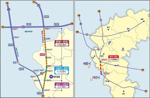 (청주=연합뉴스) 전창해 기자 = 충북도는 중부고속도로 증평∼호법 구간과 경부고속도로 회덕∼청주 구간 확장사업이 국토교통부 예비타당성조사 대상으로 신규 선정됐다고 24일 밝혔다.