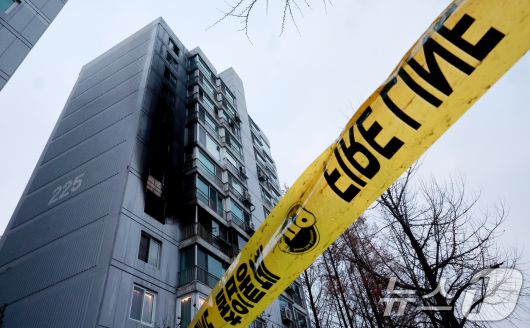 24일 오전 서울 송파구 방이동 한 아파트 5층에서 화재가 발생해 현장이 검게 그을려 있다. 이번 화재로 심정지 상태로 2명이 병원으로 이송됐으며 주민 37명이 대피하고 4명이 구조됐다. 소방당국은 오전 7시 11분 완진했다고 밝혔다. 2025.12.24/뉴스1 ⓒ News1 이호윤 기자