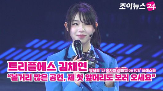 [조이뉴스24 문수지 기자] 그룹 트리플에스 김채연이 지난 23일 오후 서울 목동아이스링크에서 열린 뮤지컬 '나 혼자만 레벨업 on ICE' 프레스콜에서 소감을 말하고 있다.