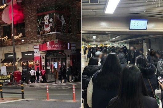 '딸기시루 '출시 첫날인 23일 대전 성심당 케이크부띠끄 본점 인근과 중앙로역 지하상가에 구매대기 행렬이 늘어선 모습./온라인커뮤니티 |