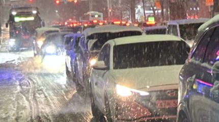 오후 서너 시부터 시작한 눈은 퇴근 시간대까지 이어졌고, 시민들은 도로에 발이 묶였습니다.