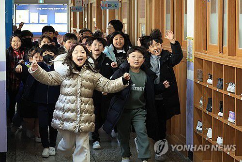 (서울=연합뉴스) 최재구 기자 = 24일 서울 동대문구 안평초등학교에서 겨울방학을 맞은 어린이들이 담임선생님과 인사하며 교실을 나서고 있다. 2025.12.24