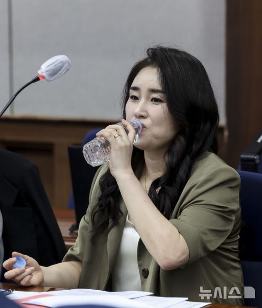 [서울=뉴시스] 사진공동취재단 = 윤석열 전 대통령 법률대리인단인 김계리 변호사가 26일 서울 서초구 서울중앙지방법원에서 열린 윤 전 대통령에 대한 '특수공무 집행 방해, 직권남용 권리행사 방해 혐의' 첫 재판에 출석해 물을 마시고 있다. 2025.09.26. photo@newsis.com |