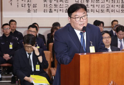 지난 10월23일 국회 법제사법위원회 수도권검찰청 등에 관한 국정검사에서 쿠팡 일용직 노동자 퇴직금 미지급 사건 수사 과정 중 무혐의 결론 외압이 있었음을 폭로한 문지석 당시 인천지청 부천지청 부장검사(왼쪽)가 증언석에서 당시 문검사의 상관이던 엄희준 당시 부천지청장 현 광주고검 검사의 발언을 들으며 안경을 고쳐쓰고 있다. 윤운식 선임기자 yws@hani.co.kr |