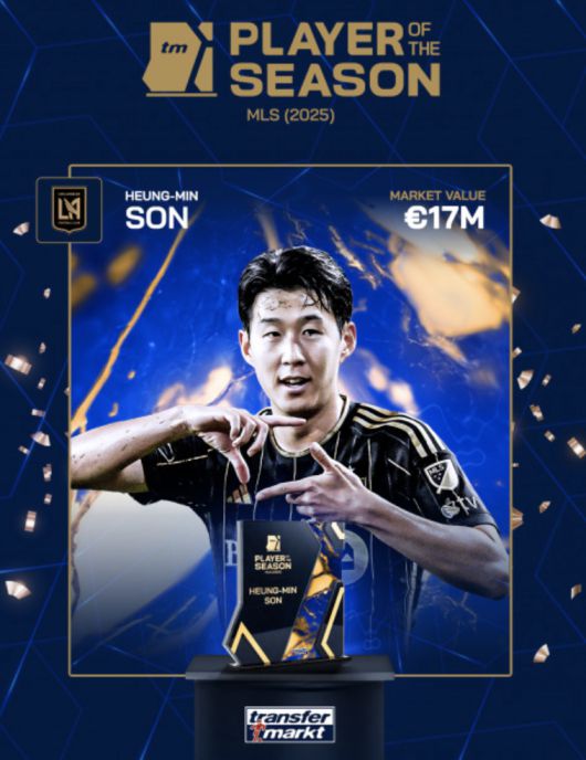 글로벌축구이적정보전문매체 ‘트랜스퍼마크트’는 24일(한국시간) “손흥민이 트랜스퍼마크트 선정 MLS 올해의 선수상을 수상했다. 인터 마이애미의 리오넬 메시를 제치고 1위를 차지했다”라고 발표했다.