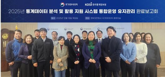 한국통계정보원 컨소시엄이 국가데이터처로부터 수주해 올 한 해 추진해온 ‘2025년 통계데이터 분석 및 활용 지원 시스템 통합운영 유지관리 사업’이 성공적인 마침표를 찍었다. 지난 18일 정부대전청사에서 열린 완료보고회에서는 올해의 운영 성과를 점검하고, AI 기술 접목 및 통합운영 사업의 구체화 방안 마련 등 2026년의 핵심 추진 방향이 논의됐다.