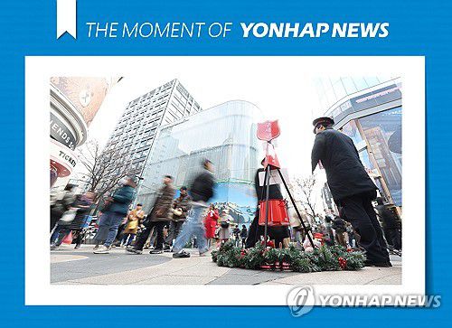(서울=연합뉴스) 김성민 기자 = 크리스마스를 하루 앞둔 24일 서울 중구 명동 거리에 구세군 자선냄비가 놓여 있다. 2025.12.24 [THE MOMENT OF YONHAPNEWS]