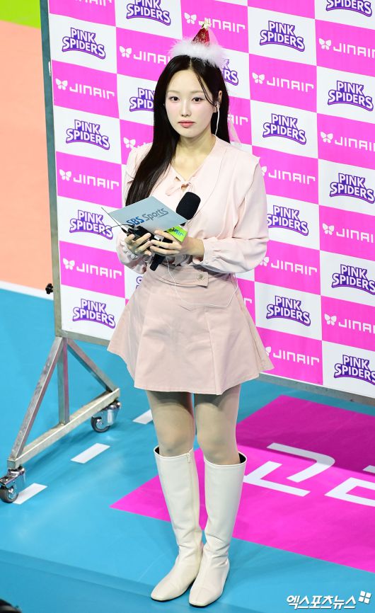 (엑스포츠뉴스 인천, 박지영 기자) 24일 오후 인천 삼산월드체육관에서 열리는 '진에어 2025-2026 V-리그' 흥국생명과 IBK기업은행의 경기에 앞서 김세연 아나운서가 인터뷰를 준비하고 있다.박지영 기자 jypark@xportsnews.com