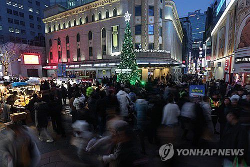(서울=연합뉴스) 서대연 기자 = 크리스마스를 하루 앞둔 24일 서울 중구 명동거리가 인파로 북적이고 있다. 2025.12.24 dwise@yna.co.kr ▶제보는 카카오톡 okjebo▶연합뉴스 앱 지금 바로 다운받기~▶네이버 연합뉴스 채널 구독하기 <저작권자(c) 연합뉴스, 무단 전재-재배포, AI 학습 및 활용 금지><저작권자(c)연합뉴스. 무단전재-재배포금지.>