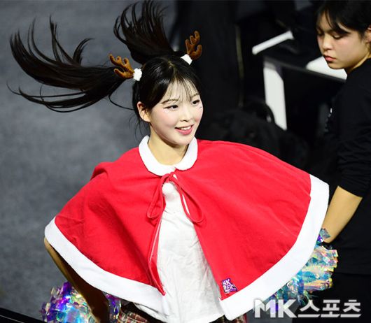 흥국생명 치어리더 최석화가 응원을 유도하고 있다.