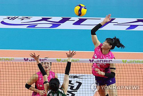(인천=연합뉴스) 임순석 기자 = 24일 인천 삼산월드체육관에서 열린 프로배구 V리그 여자부 흥국생명과 IBK기업은행 경기. 흥국생명 정윤주가 공격하고 있다. 2025.12.24
