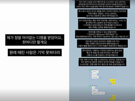 그는 “혹시 제가 성인이 된 후 개명을 하여 기억하지 못하신 것이라면, 카페 이름은 ‘경싫모’, 시기는 2003년, 당시 저는 초등학교 4학년 7반이었습니다”라며 “당시 담임선생님, 해당 카페 가입자들, 저희 부모님, 그리고 저 총 4학년 7반 교실에서 공식 면담이 있었고 그 자리에서 담임선생님이 카페 폐쇄를 지시하셔서 해당 카페는 실제로 폐쇄되었습니다”라고 밝혔다.
