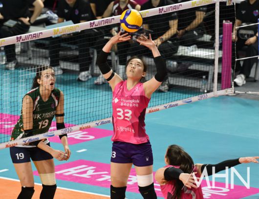 (MHN 인천, 이지숙 기자) 24일 오후 인천 삼산체육관에서 진에어 2025-2026 V리그 여자부 흥국생명과 IBK기업은행의 경기가 열렸다. 흥국생명 이나연이 세트를 시도하고 있다. 한편, 이날 경기는 흥국생명이 IBK기업은행을 세트스코어 3-0으로 꺾고 승리했다. <저작권자 Copyright ⓒ MHN / 엠에이치앤 무단전재 및 재배포 금지>