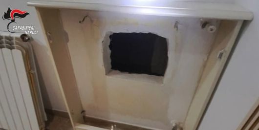 23일(현지시간) 붙잡힌 이탈리아 마피아 두목 치로 안돌피가 숨어있던 은신공간 입구. 나폴리 경찰 공개 영상 갈무리. |