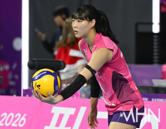 (MHN 인천, 이지숙 기자) 24일 오후 인천 삼산체육관에서 진에어 2025-2026 V리그 여자부 흥국생명과 IBK기업은행의 경기가 열렸다. 흥국생명 정윤주가 서브를 준비하고 있다. 한편, 이날 경기는 흥국생명이 IBK기업은행을 세트스코어 3-0으로 꺾고 승리했다. <저작권자 Copyright ⓒ MHN / 엠에이치앤 무단전재 및 재배포 금지>